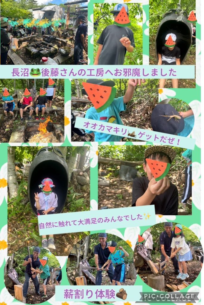 『レイデイ』長沼の工房へ 未分類 2025.08.19 今年も長沼の工房へお邪魔して来ました! 去年行ったお友達や今年初めて行ったお友達などなど✨ かえる🐸を見つけたりオオカマキリを見つけたりとみんな自然を大満喫してきました😊 お昼はジンギスカン&かき氷🍧 とっても美味しかったです😋