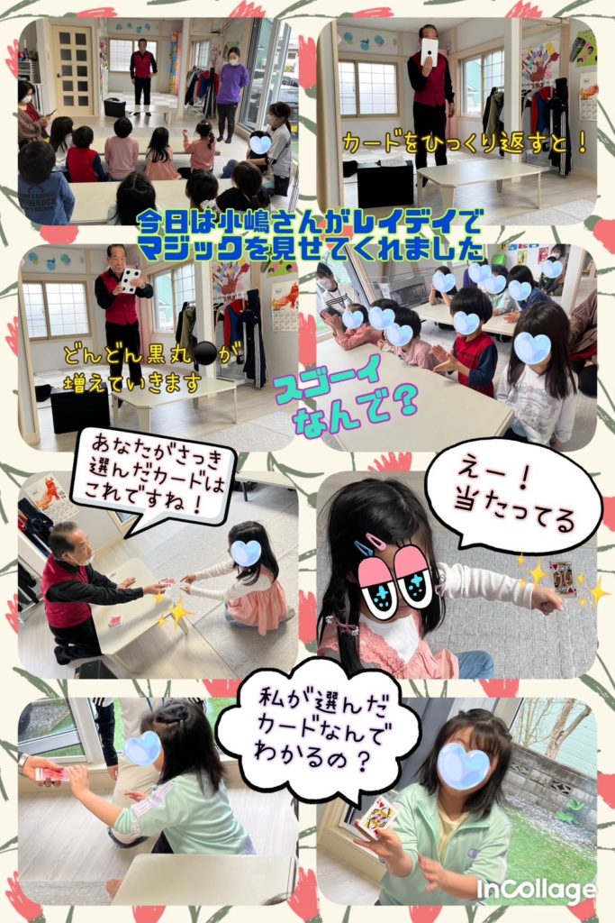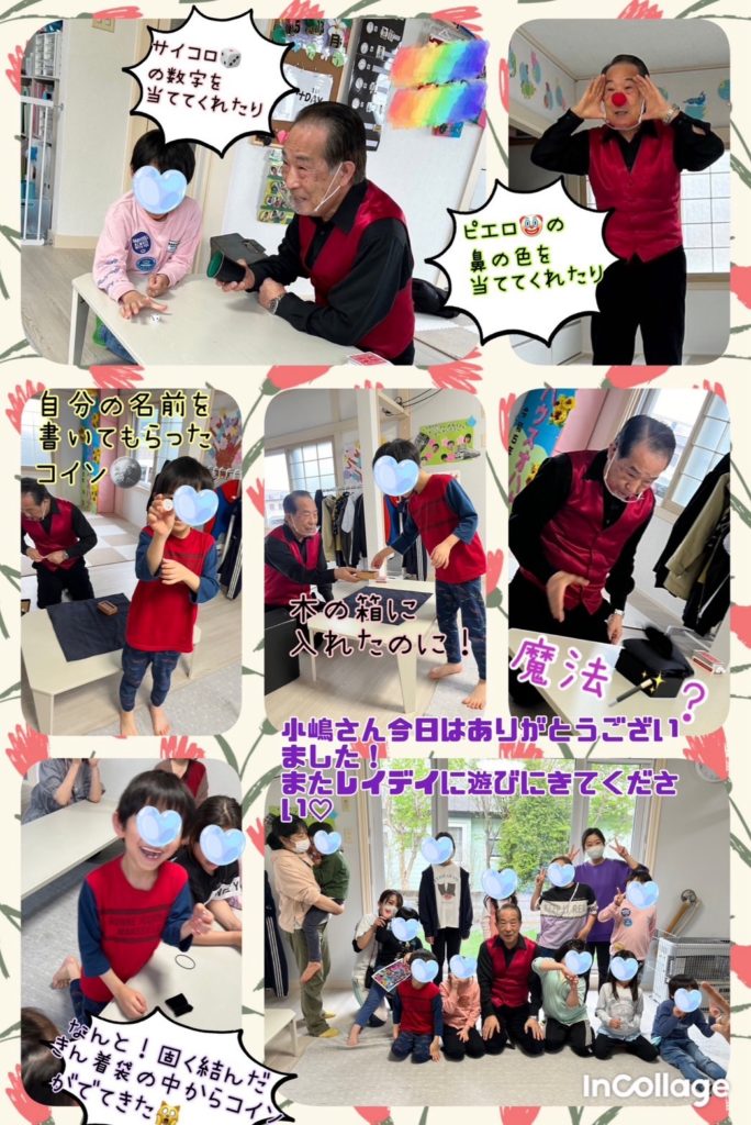 『レイデイ』マジックショー✨ 未分類 2024.05.13 今日は千歳市内でマジックを行なっている「こじまさん」がレイデイに来てみんなにマジックを見せて下さいました😊 トランプを使ったマジックやコインを使ったマジックなどみんな「えっ!えっ!どうなってるの?」と大興奮❗️ マジックを見た後はみんなでお礼のお手紙を書きました💌 とっても楽しいルアナデイでした✨