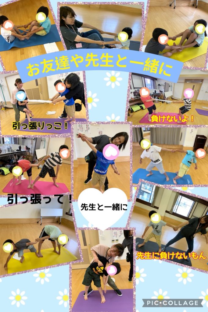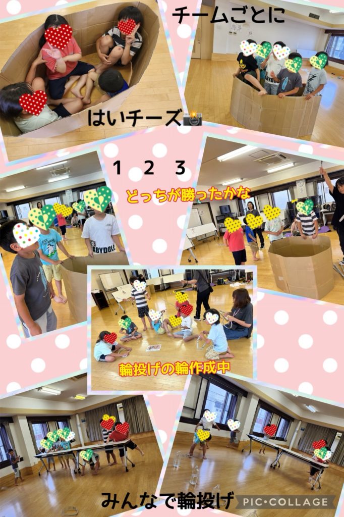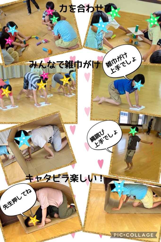 『レイデイ』運動プログラム 未分類 2024.07.12 空手の先生がお休みになった為、今日はサーキット遊びやチーム対抗のゲームをしました✨ お友達と力を合わせたり同じチームのお友達を応援する姿だったりとっても楽しくて素敵な時間でした😊