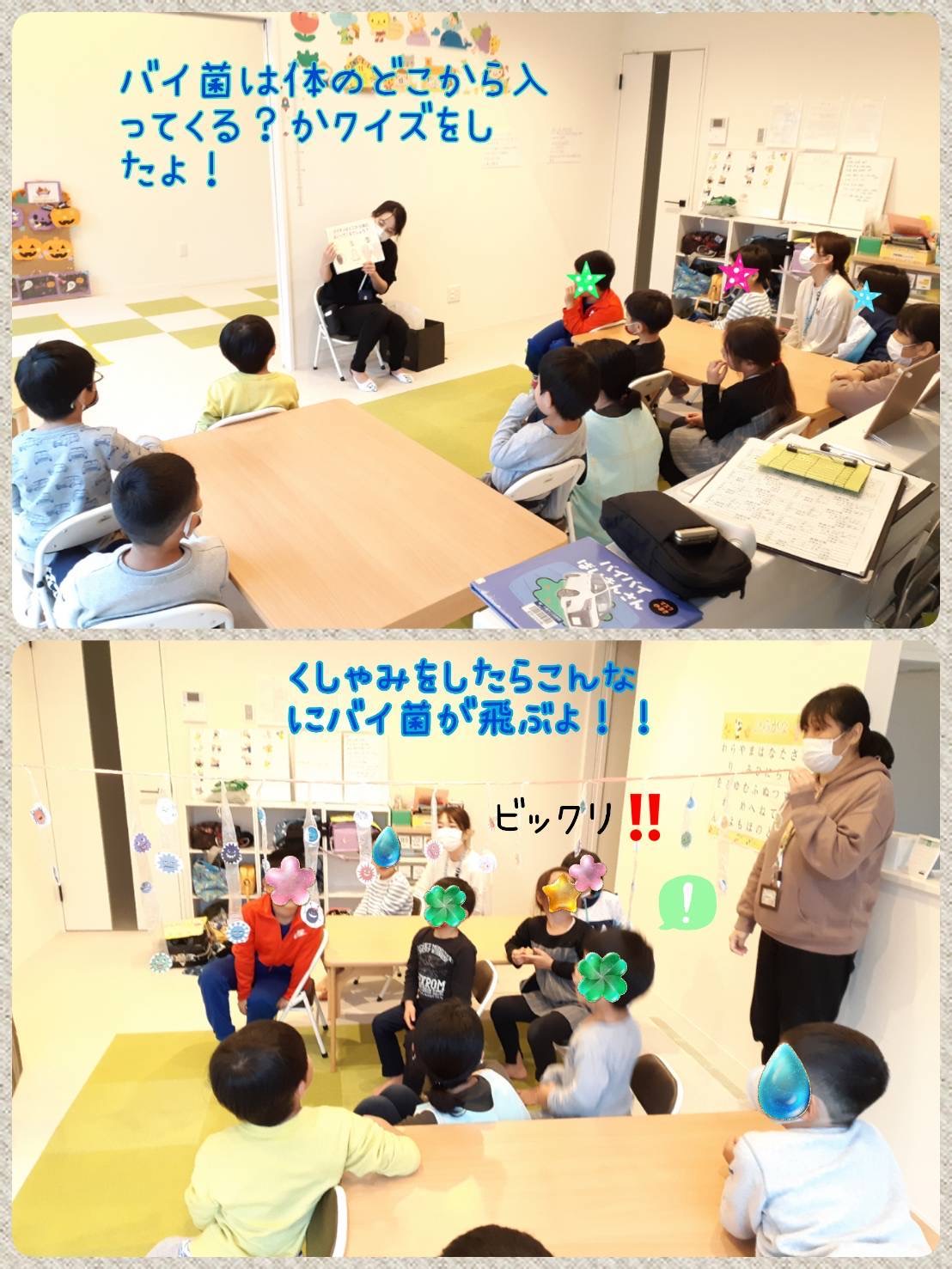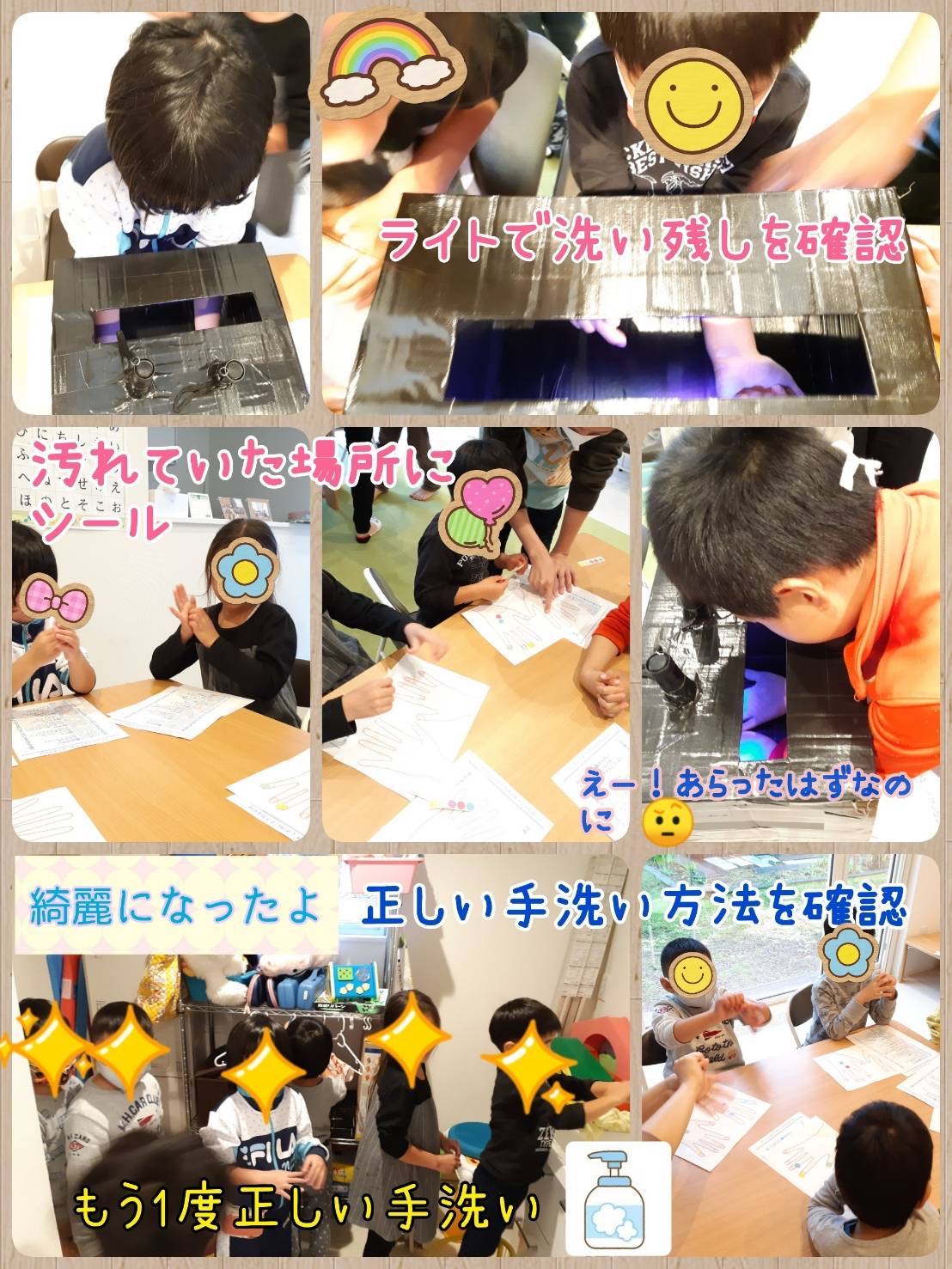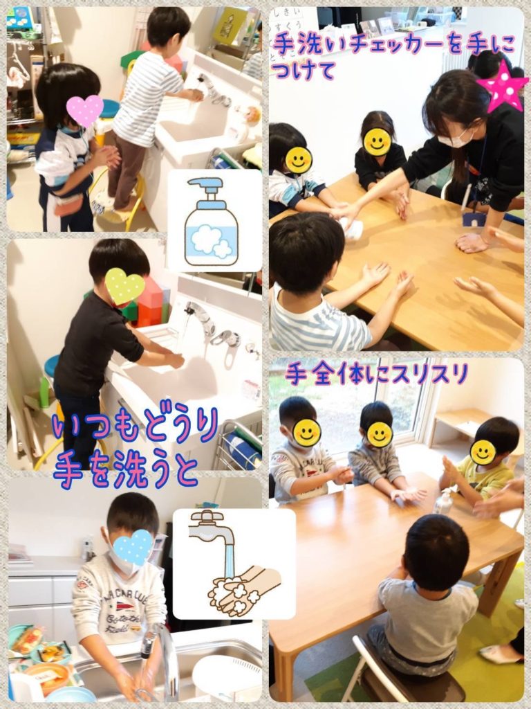 🙌手洗い指導🧼 未分類 2021.10.26 まさに今が大事な、そしてこれからの季節は特に大切な事を学び、大人も勉強になるプログラムとなりました(๑・̑◡・̑๑)養護教諭の資格を持った、ひさえ先生が『手洗い指導』を行ってくれました! とっても、興味深くて子ども達も真剣に自分の手の汚れを気にしていました!!