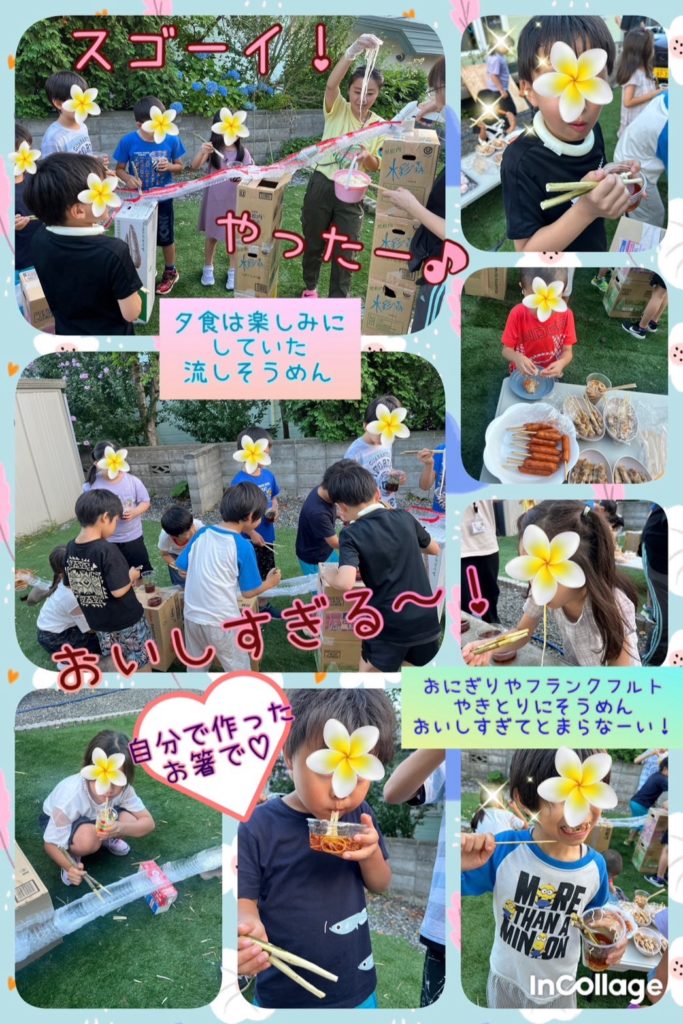 みんな夢中になって流しそうめんに食らいつきたっくさん食べていましたよ(食べる)(食べる)(食べる)
