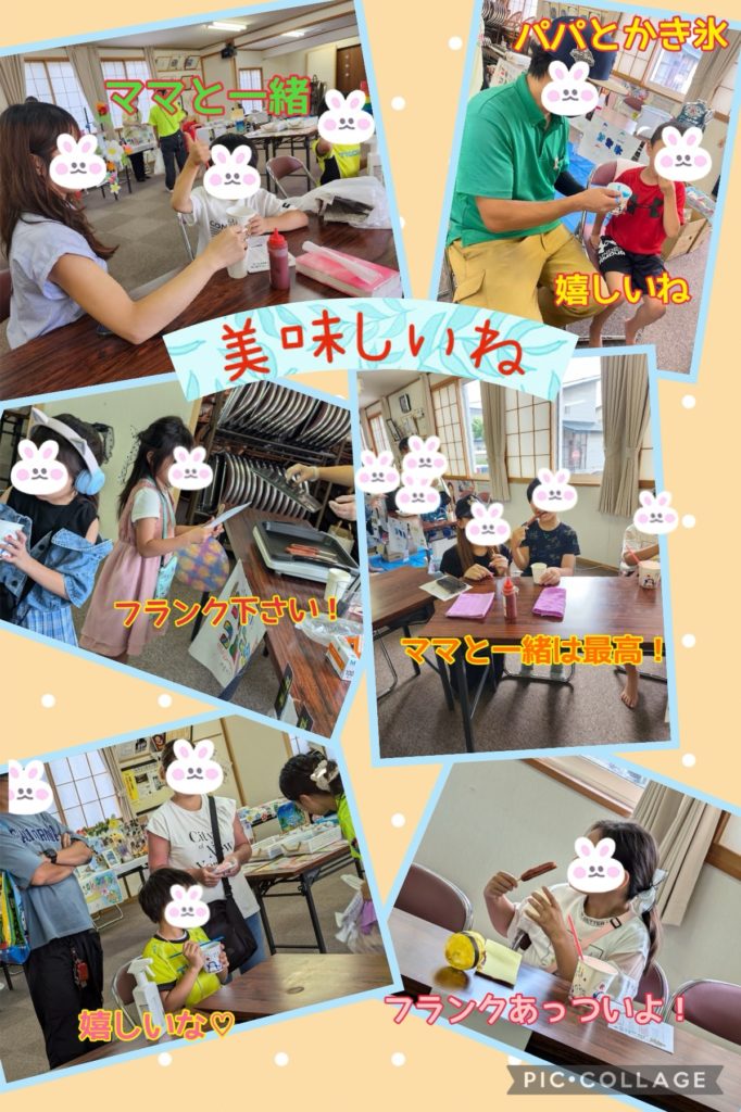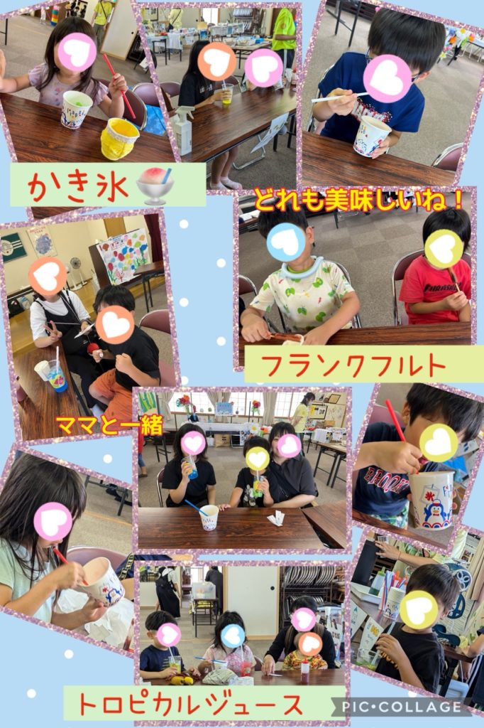 『レイデイ』Happyフェスタ! 未分類 2024.08.20 午前、午後に分かれてレイデイHappyフェスタを開催! 子供達が作った作品やみんな大好きくじ引き、かき氷、フランクフルト、トロピカルジュースを販売しました✨ たくさんの保護者の方にも来て頂き無事に終える事が出来ました!