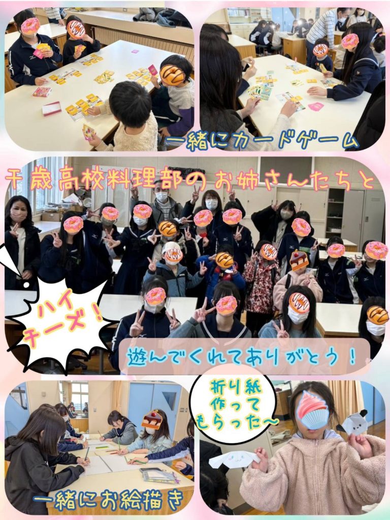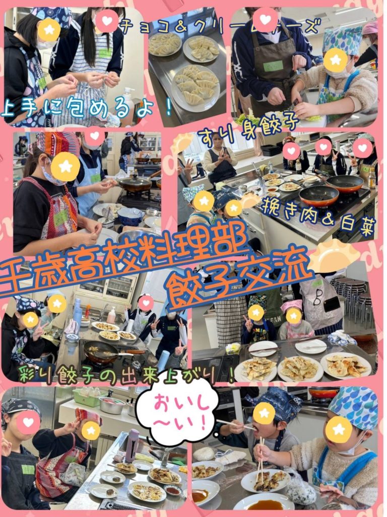 『レイデイ』千歳高校調理部のみなさんと餃子交流🥟 未分類 2025.01.15 千歳高校調理部の方と一緒に彩り餃子作りを行ないました🥟 チョコ、クリームチーズ すりみ お肉 とっても楽しく、どれも美味しかったです。 クッキングの後は一緒にお絵描き、レシピ(カードゲーム)、折り紙をして遊びました!