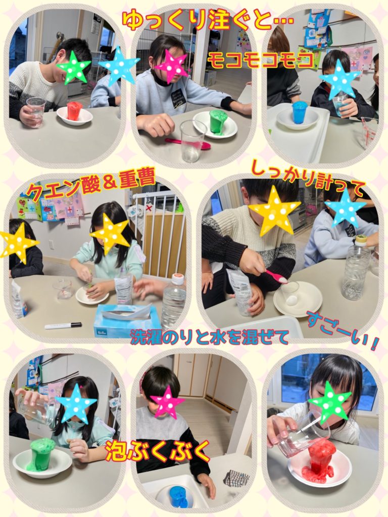 片栗粉とお水を混ぜたりクエン酸、重曹に水と洗濯のりを混ぜたり…