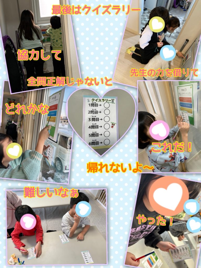 防災カルタをし最後にクイズラリーをしました。