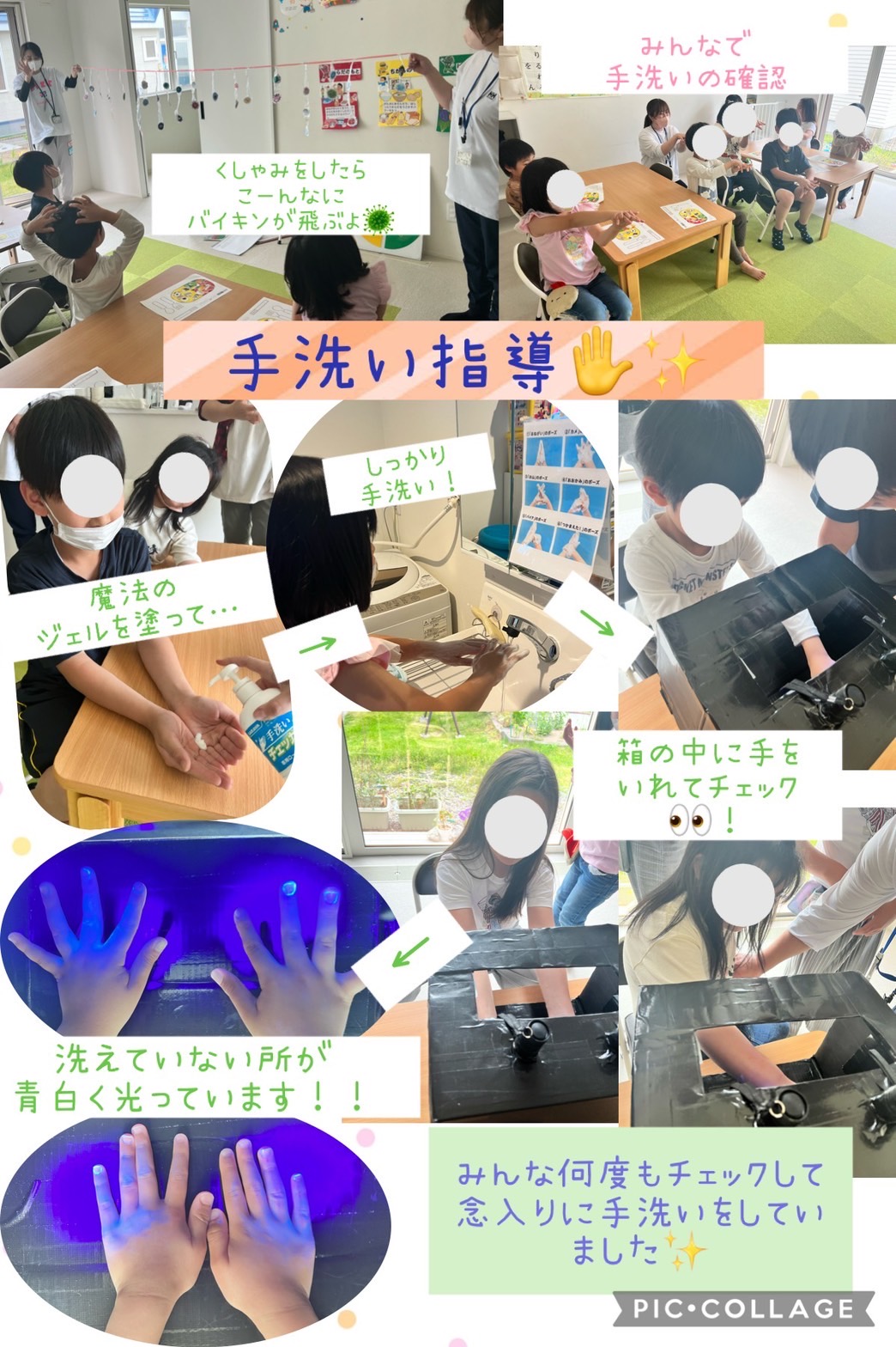 🦠手洗い指導🖐️みんな驚き‼️ 未分類 2023.06.22 食育に続き、手洗い指導を行いました!!ひさえ先生が手洗いの大切さを改めて指導してくれましたよ(*´∀`)♪みんな、自分のバイ菌に驚きを隠せない様子でしたW(`0`)W