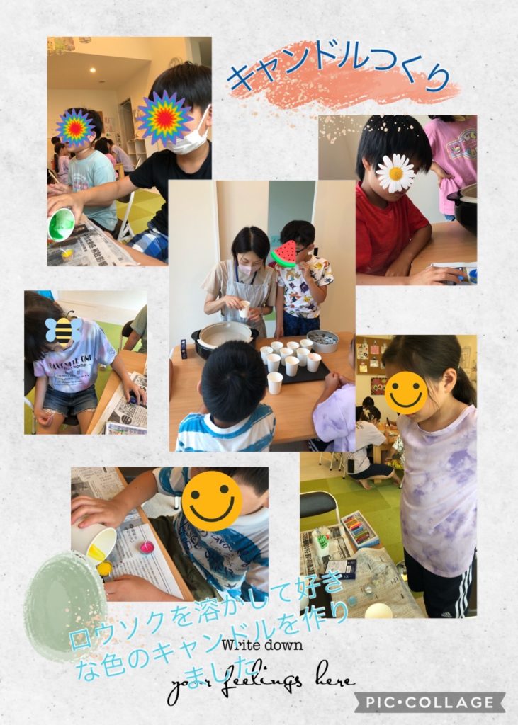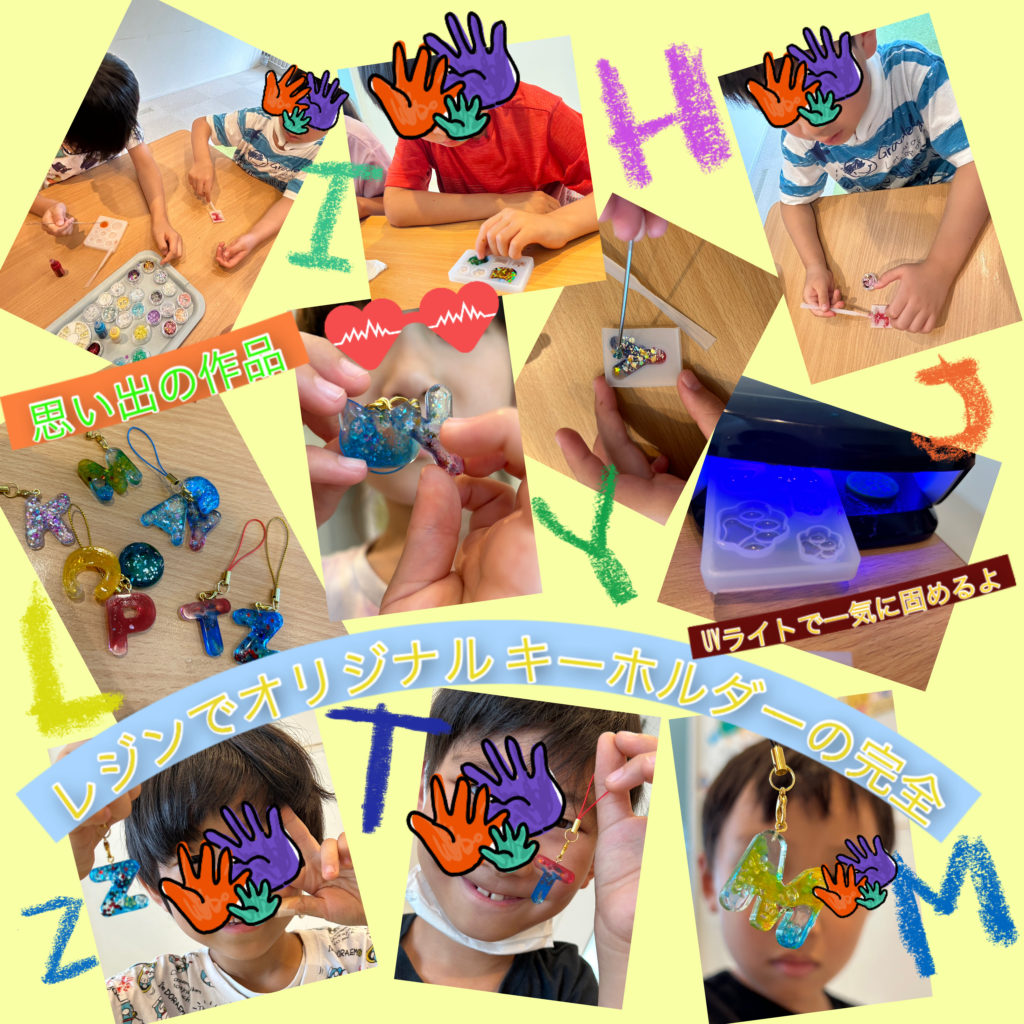 無事に準備完了!!!!!! 次はお泊まり会での思い出グッズ制作✨ レジンでオリジナルキーホルダー・オリジナルキャンドル🕯️をグループに分かれて行いました(≧∇≦) みんなそれぞれが自分の好みに合わせて沢山のデコレーションをしながらワイワイ楽しんでいて、誰に何を言われたわけでもなく ママへのプレゼント♡と自分とママやお家の人へ頑張って作っているお友達もいました╰(*´︶`*)╯♡ とてもお気に入りの作品が出来たようで大満足の表情を見せてくれました♪