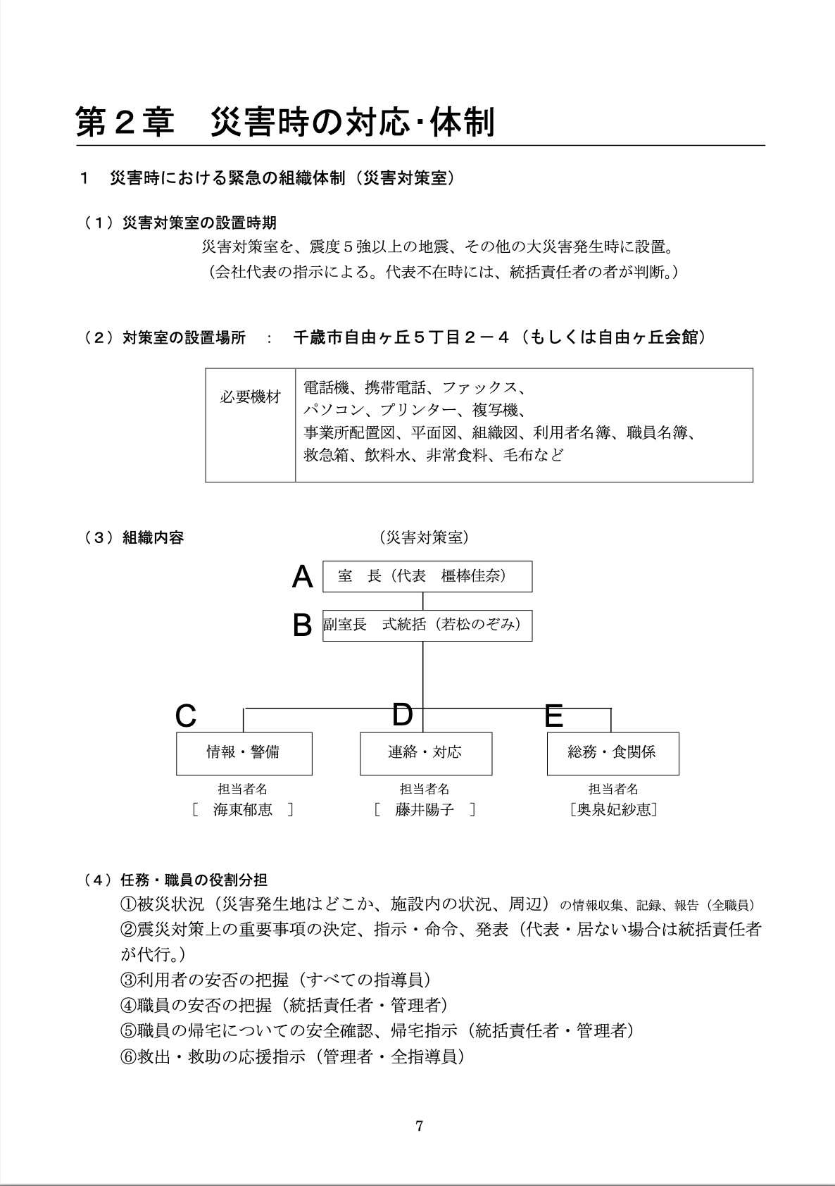 非常災害対策計画